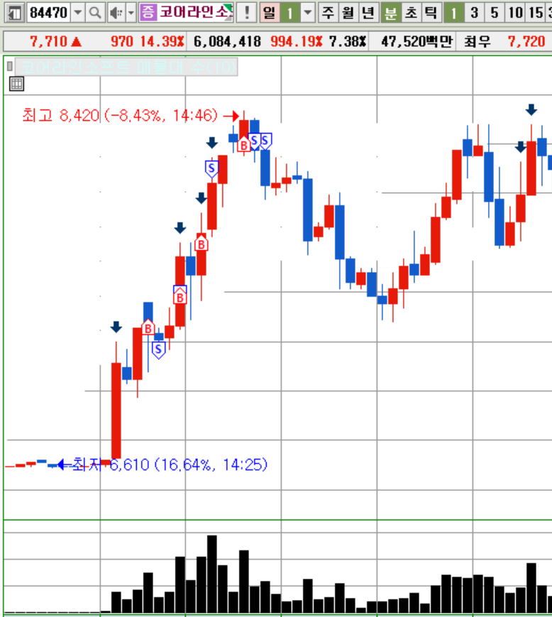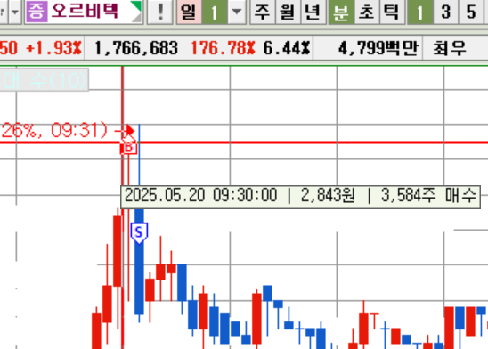 9:00 시가에 배팅을 했으면 좋았으련만, 프로그램매수가 많이 들어온 것을 보고 추격매수