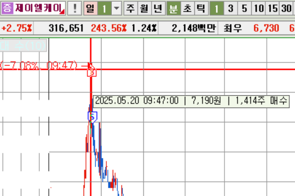 => 애매하게 9시5분쯤 다 오른걸 추격매수하며 수없이 손절했으나 아직 고치치 못함. 차라리 맞더라도 시가배팅을 하자.