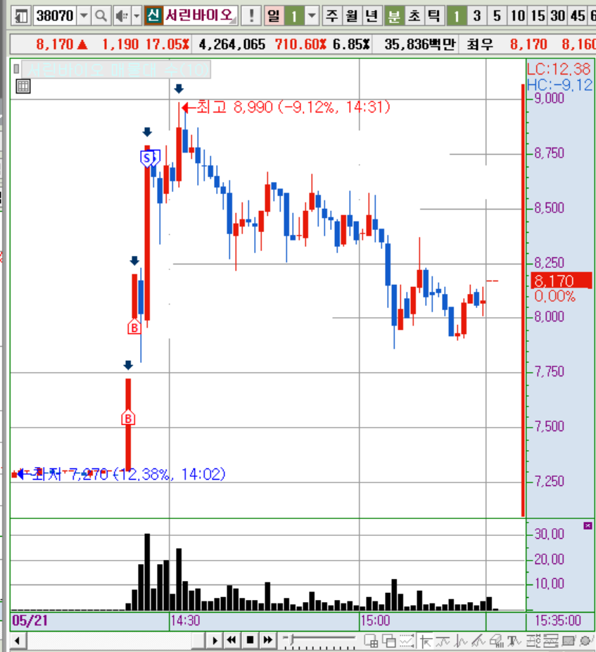 서린바이오 특징주 뉴스로 매수. 10% 수익.