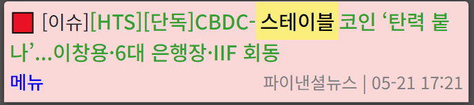 원했던 특징주가 아닌 미국 스테이블코인 특징주가 나와 실망한듯 매도.