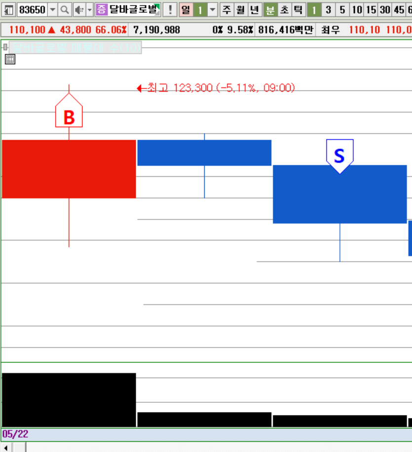달바글로벌 시가배팅 안하고 고점매수 손절