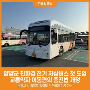 [강원 위클리오늘=박종국 기자] 양양군은 정부의 탄소중립 실현과 교통약자의 이동 편의 증진을 위해 친환경 전기 저상버스 3대를 새롭게 도입하고, 10월 25일부터 본격 운행을 시작
