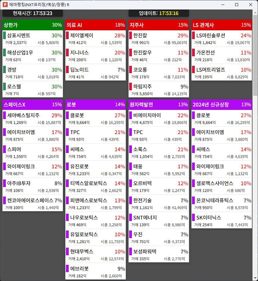 ⬛ 컬러레이 3.51% (거래대금 0억)
