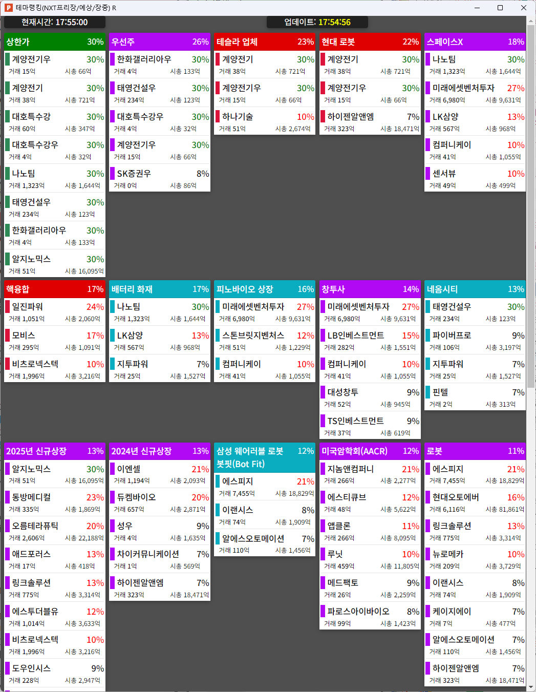 2. 나노팀(29.98%) : 스페이스X(SpaceX) 테마 상승 속 스페이스X에 갭필러 샘플 공급 이력 지속 부각에 상한가