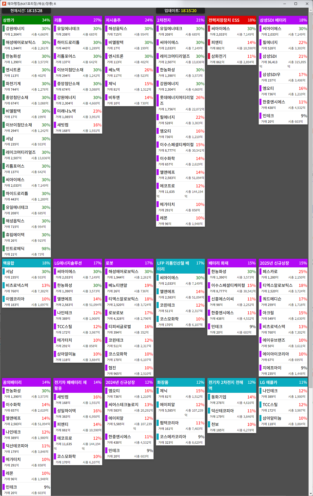 18. 롯데에너지머티리얼즈(26.61%) : 로봇 산업 발전 수혜 기대감, 리튬 가격 상승, 테슬라(+2.91%) 주가 상승 영향등에 2 차전지 테마 상승 속 급등