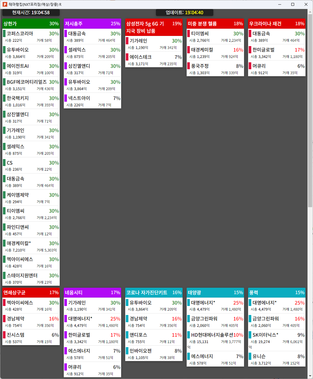 17. 대명에너지(28.25%) : 국제유가 급등 영향 및 李 대통령재생에너지로 신속 전환 발언 등에 일부 태양광에너지/ 풍력에너지 테마 상승 속 급등