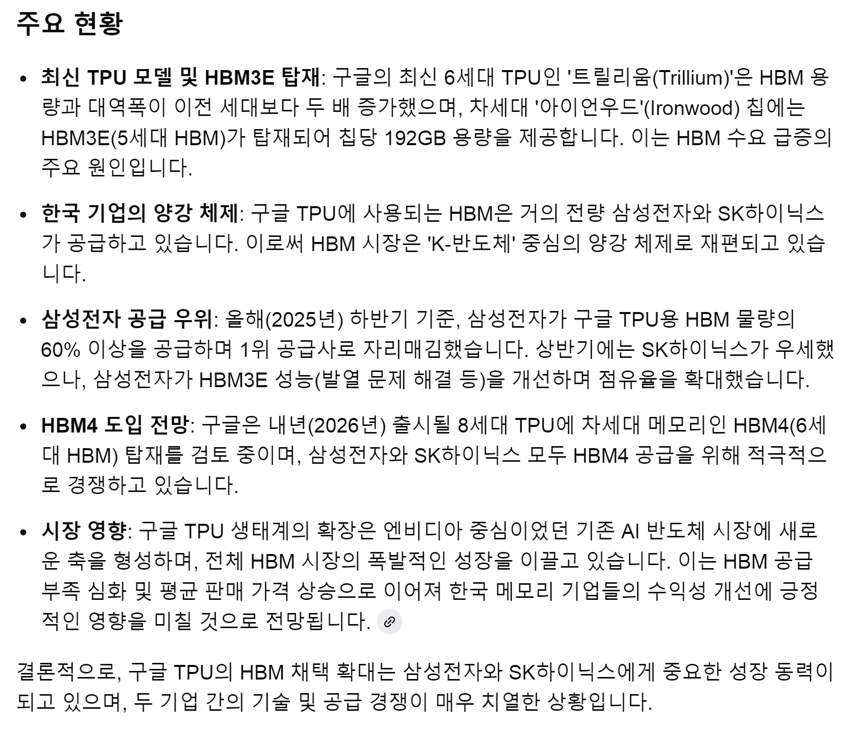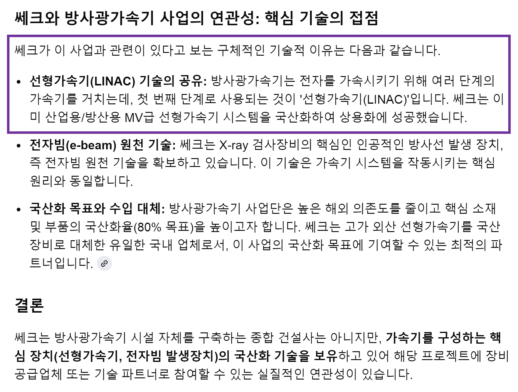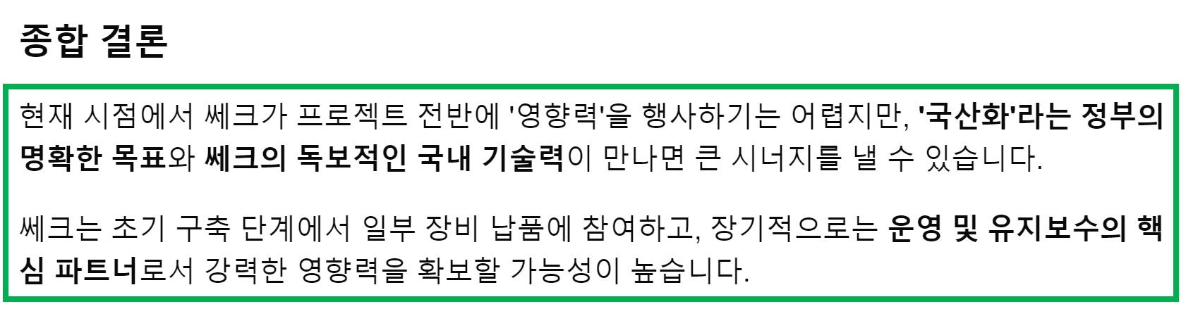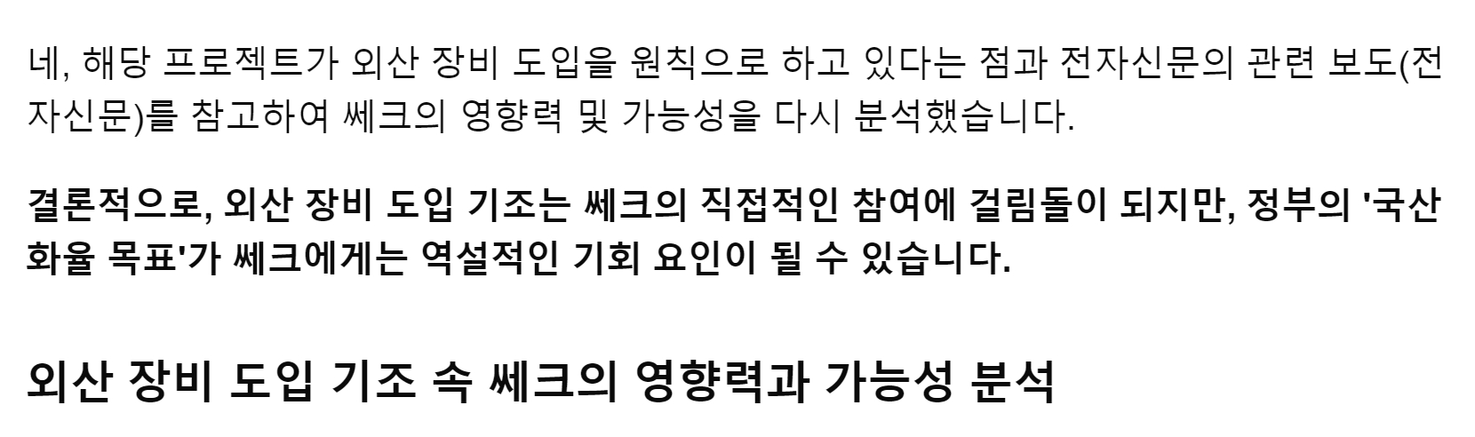 AI가 말하는 핵심은 "정부가 국산화 80%를 목표" 하고 있으며