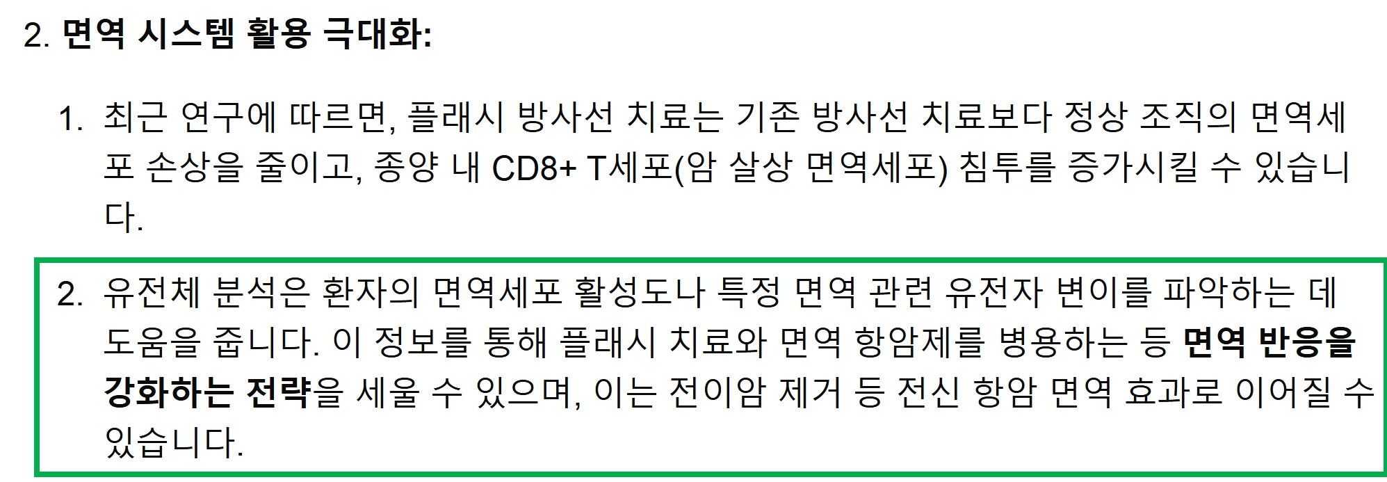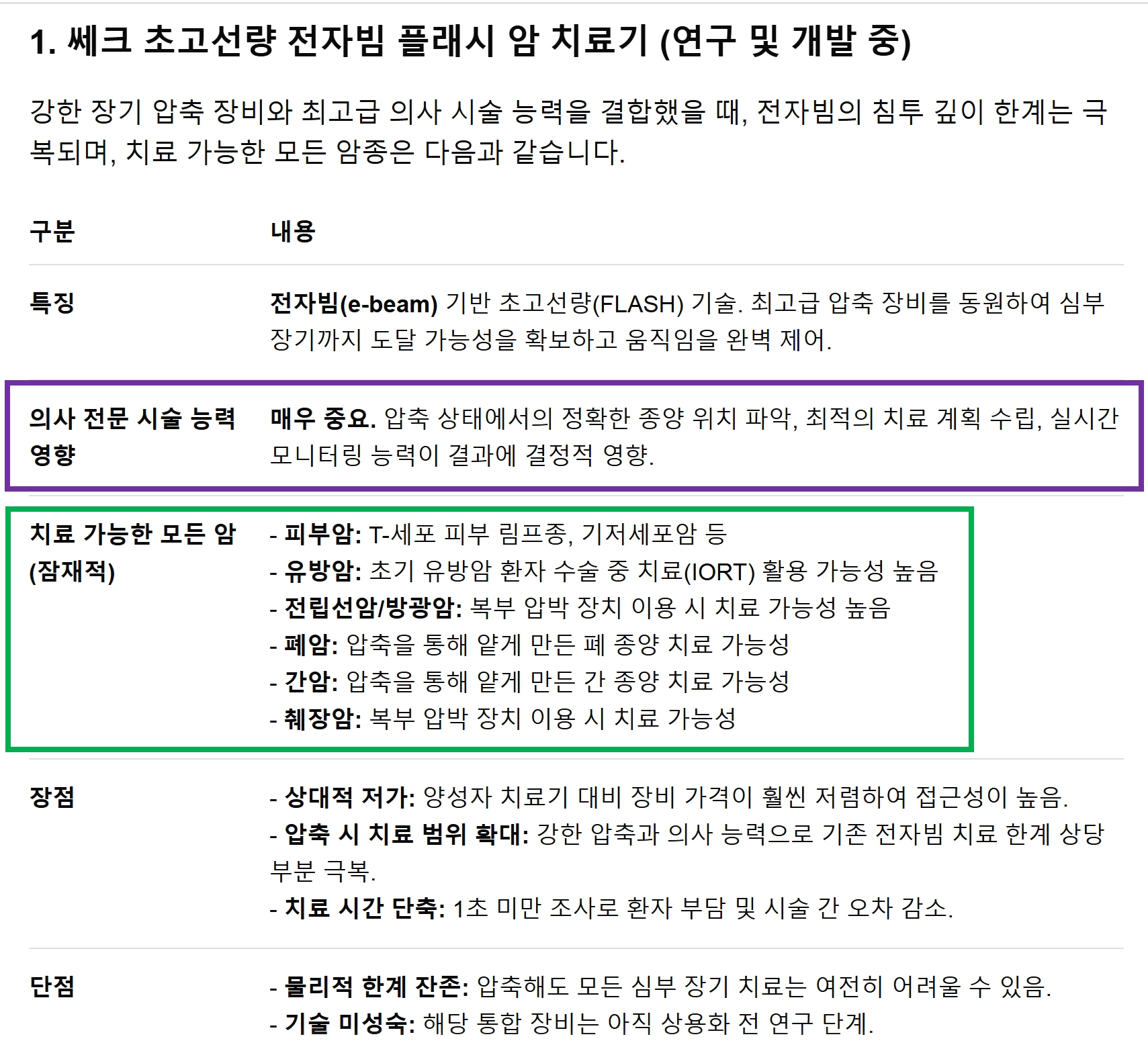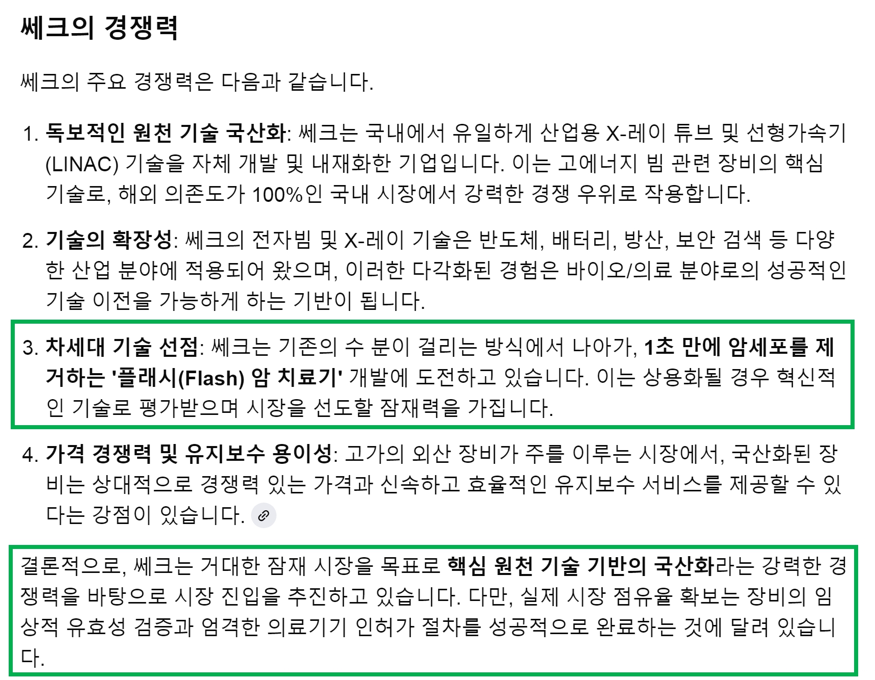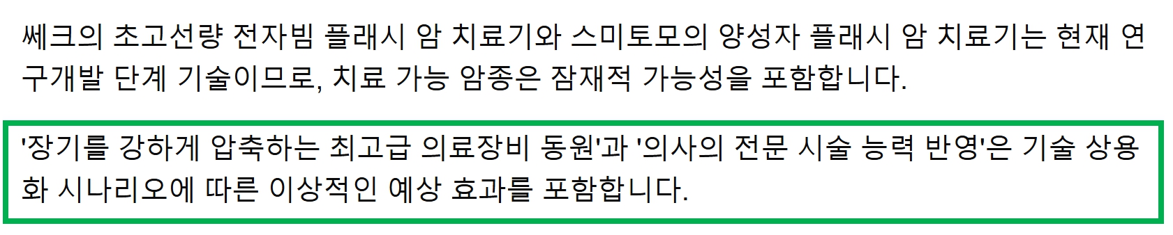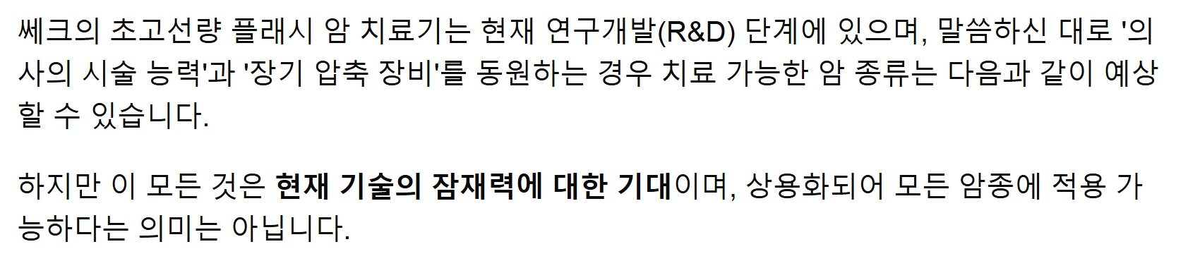 쎄크 플래시 암치료기의 가능성을 높히는 데 중요하다고 언급하고 있습니다.