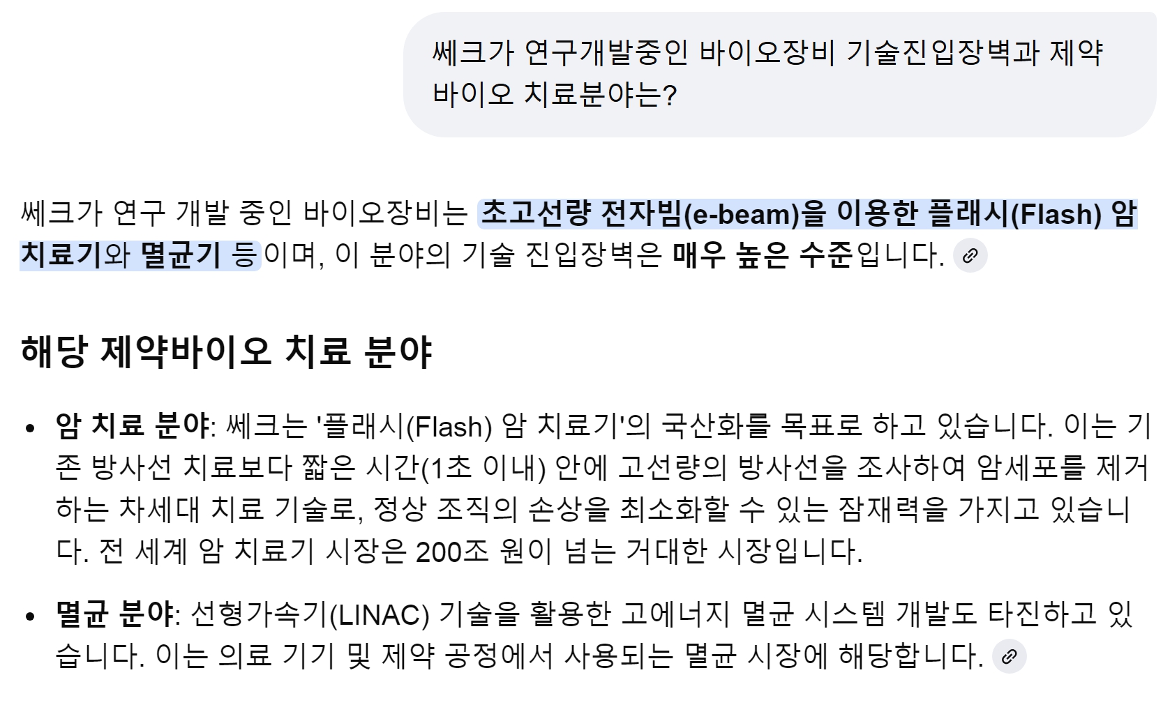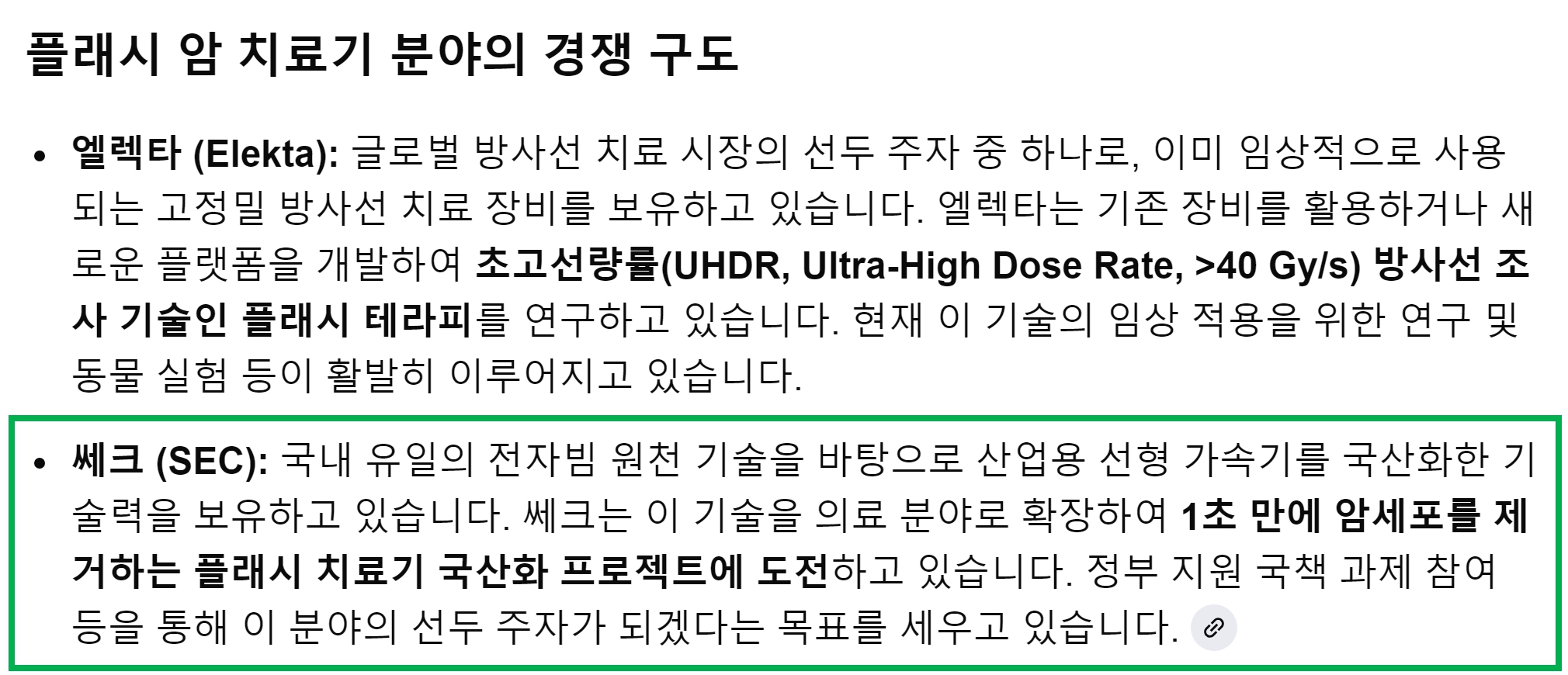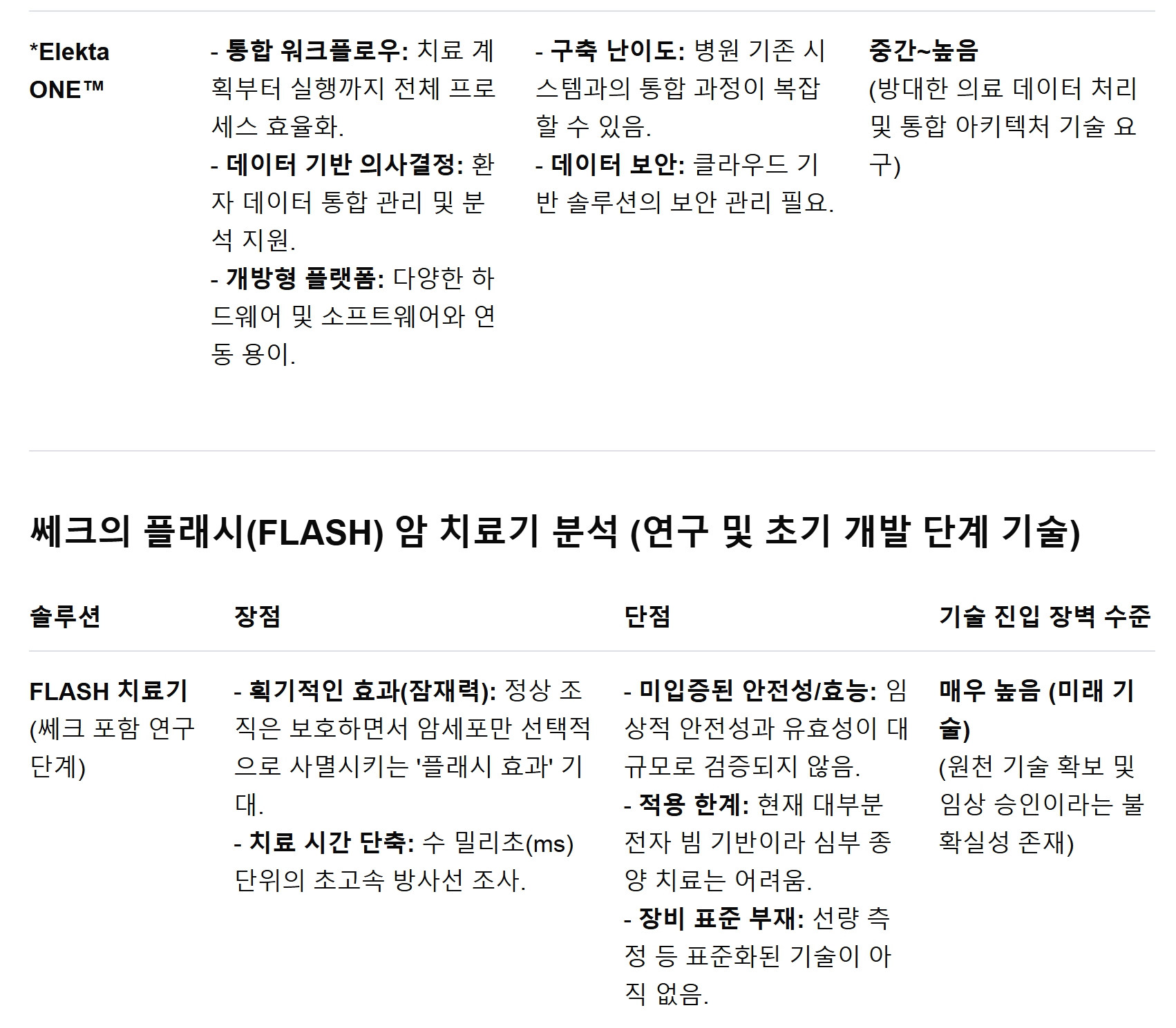 쎄크의 초고선량 플래시 전자빔 암치료기와 스미토모 양성자 플래시 암치료기를