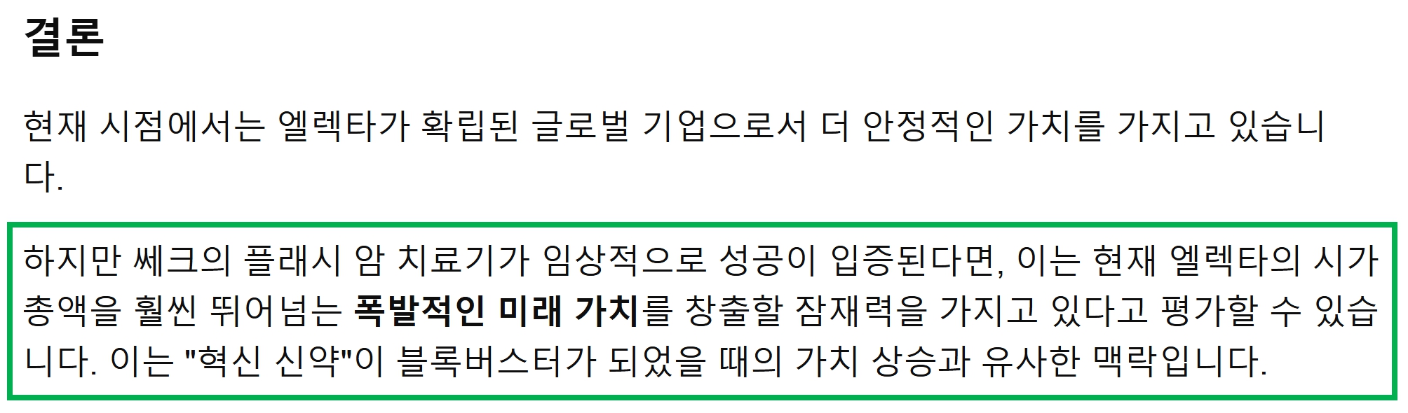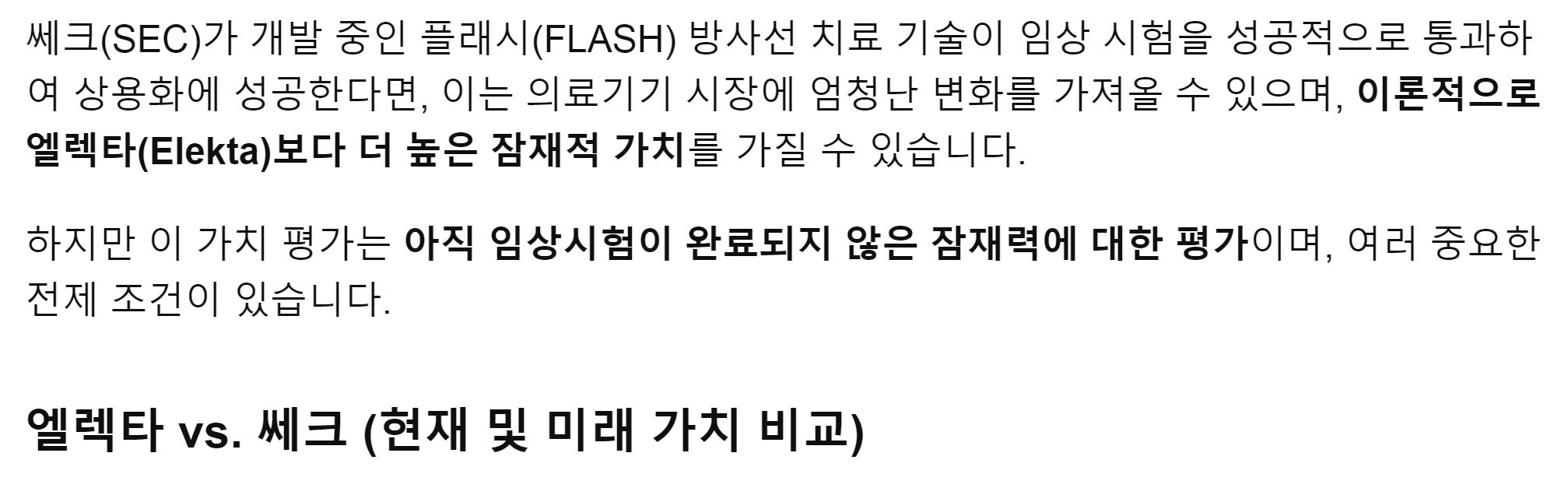 우리는 상대가치에 주목해야 하는데요. 물론, 쎄크와 엘렉타는