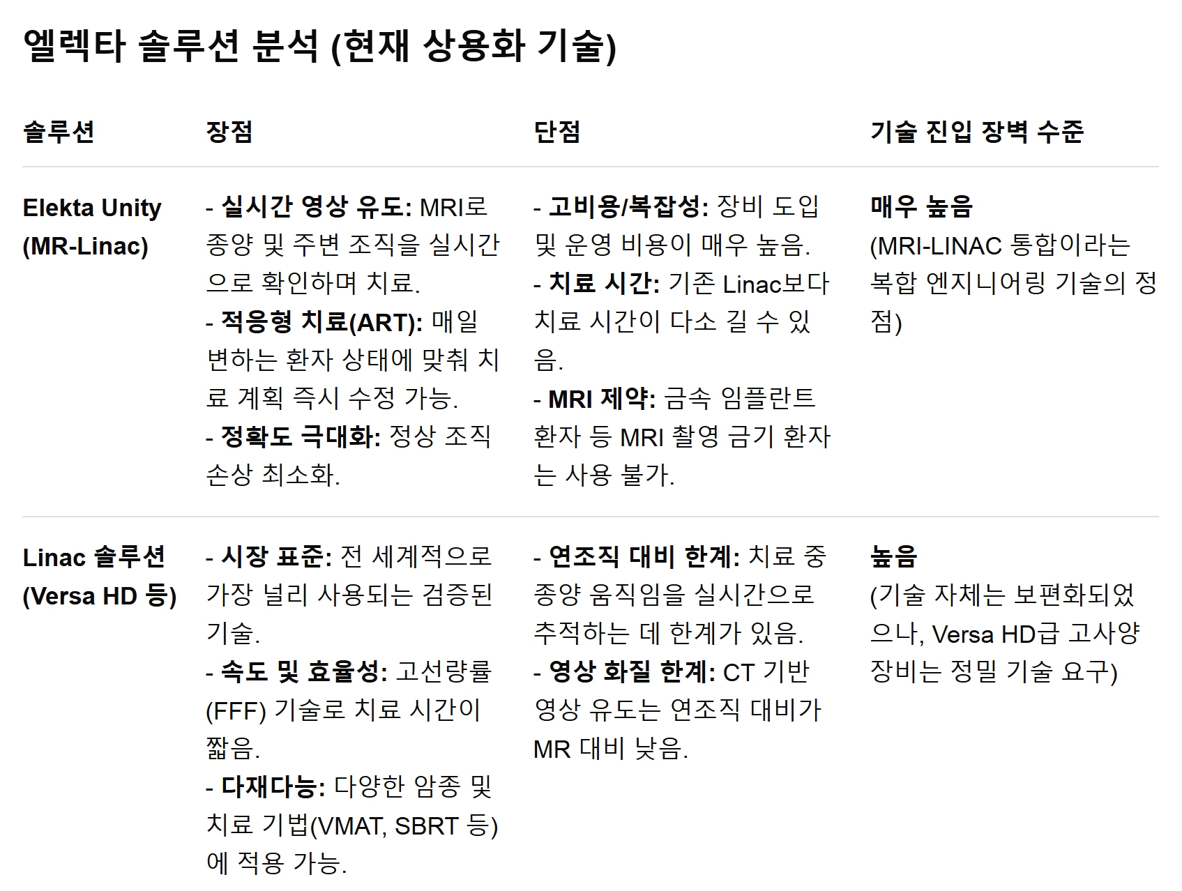 경쟁기업 엘렉타의 MR-LINAC는 완치율 보다