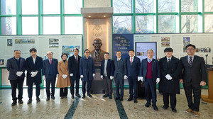 (김해=국제뉴스) 황재윤 기자 = 인제대는 2일 본관 1층 로비에서 백병원을 설립하며 오늘날 인제학원의 기틀을 마련한 백인제 박사 흉상 제막식을 개최하고, 백 박사의 인술제세(仁術