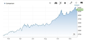 코스피가 5일 상승세를 나타내며 사상 처음으로 4400선을 돌파했다. 삼성전자를 비롯한 시가총액 상위종목들이 랠리를 주도하고 있다. 이날 한국거래소에 따르면 오전 10시 29분 코