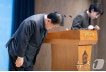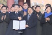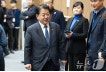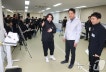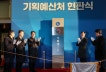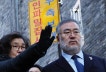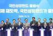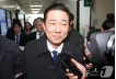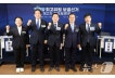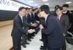 경기지사 출마 기자회견 참석자들과 인사하는 김병주