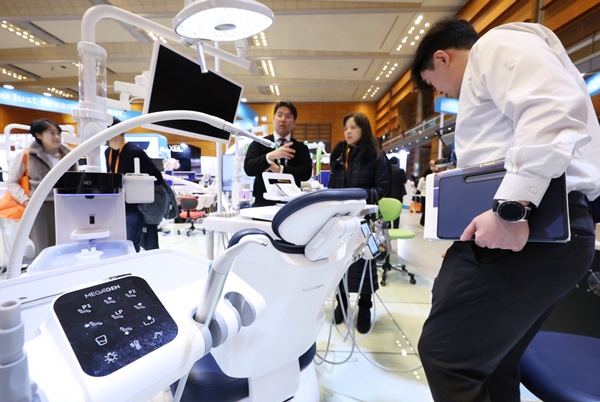 11일 서울 강남구 코엑스에서 열린 치과 개원 전문박람회 ‘2026 개원 및 경영정보 박람회 & 콘퍼런스’를 찾은 관람객들이 치과용 의료기기를 살펴보고 있다. 연합뉴스