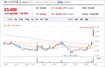 에스비비테크가 강세다. 4일 오후 1시 18분 기준 에스비비테크는 전 거래일보다 28.21 |