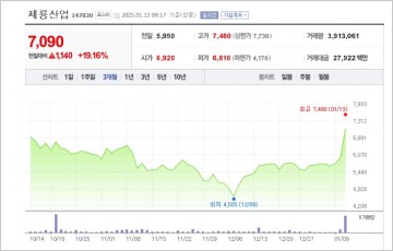 [특징주] 제룡산업, LA 전력망 복구 수요 기대감에 '상승세' |
