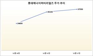 매일일보 = 서효문 기자 | 인공지능(AI)과 에너지저장장치(ESS) 시장 성장 기대감에 롯데에너지머티리얼즈 주가가 약 일주일 새 50% 넘게 급등했다.17일 한국거래소에 따르면