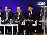 이재명 정부 출범 6개월을 맞아 대통령실 핵심 경제라인이 7일 용산에서 성과 보고 간담회를 열고 환율·증시·부동산 등 주요 현안을 직접 평가했다.강훈식 비서실장, 김용범 정책실장,