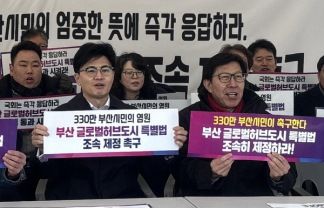 국민의힘 한동훈 대표와 추경호 원내대표가 28일 “부산글로벌허브도시조성 특별법(특별법)이 여야 우선협상법안에 포함돼 있다”고 강조하며 특별법 처리를 위한 더불어민주당의 결단을 촉구