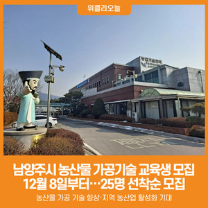 [경기 위클리오늘=박종국 기자] 남양주시는 농산물의 상품성과 부가가치를 높여 농가 소득 증대에 기여하기 위해 12월 8일부터 12일까지 ‘2025년 품목별 전문기술(농산물 가공)