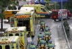 28일 홍콩 타이포 지역 왕 푹 콕 아파트 단지 화재 현장 인근에서 구급차가 대기중이다.