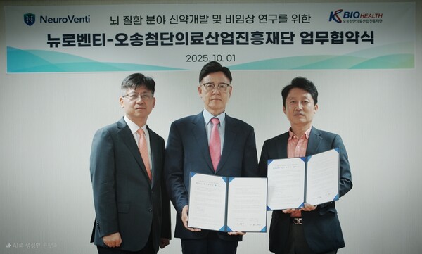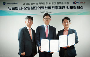 뉴로벤티(대표 신찬영,서동철)는 1일 오송첨단의료산업진흥재단(이사장 이명수, KBIOHealth)과 안전성 평가 및 중추신경계 비임상 효능 평가 고도화를 위한 업무협약(MOU)을