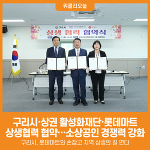 경기 구리시는 구리시상권활성화재단, 롯데쇼핑 롯데마트사업본부와 지역상권 활성화를 위한 상생협력 협약을 체결했다고 4일 밝혔다.이번 협약은 대규모 유통업체와 지역 상권이 경쟁이 아닌