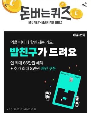 | 한스경제=김근현 기자 | 4일 출제 중인 배달의민족 캐시워크돈버는퀴즈 문제와 정답이 공개돼 누리꾼들의 관심이 쏠린다.배달의민족 캐시워크돈버는퀴즈 문제는 "이 카드는 사용하면 월
