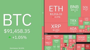 소폭 상승한 비트코인, 9만 1000달러대 거래