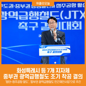 [경기 위클리오늘=박종국 기자] 화성특례시를 비롯한 성남시, 광주시, 용인특례시, 안성시, 진천군, 청주시 등 7개 시군이 ‘중부권 광역급행철도(잠실~청주)’의 조기 추진을 촉구하