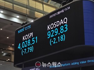 [뉴스웍스=박성민 기자] 코스피가 외국인과 기관 투자자들의 매도세에 다시 4100선을 내줬다. 8일 한국거래소에 따르면 이날 오전 9시 8분 기준 코스피 지수는 전일 대비 13.2