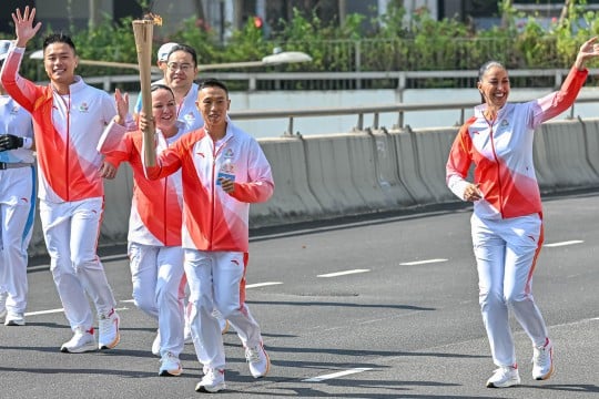 호 선수가 밸리에서 경례 후 전국체전 성화를 들고: '영광입니다'