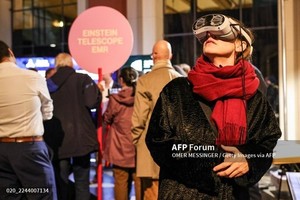 A visitor wears VR goggles to observe a simulation from inside the Einstein Telescope EMR at the Mus