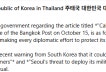 태국 주요 일간지가 한국 정부가 캄보디아 사태와 관련해 군사적 대응 가능성을 언급했다는 내