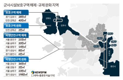 국방부가 수도권의 군사시설 보호구역과 비행안전 구역을 해제하거나 완화하기로 했습니다. 무려