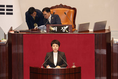 국민의힘 김은혜 의원이 29일 국회 본회의장에서 '국회에서의 증언·감정 등에 관한 법률 일부개정법률안에 대한 수정안'에 대해 무제한 토론을 이어가고 있다. 박미나 기자 ⓒ스카이데일