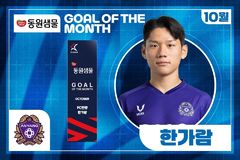 프로축구 K리그를 총괄하는 한국프로축구연맹은 K리그1 FC안양 한가람이 2025시즌 10월 K리그 '안심을 마시다 동원샘물 이달의 골' 수상자로 선정됐다고 12일 밝혔다.동원F&B