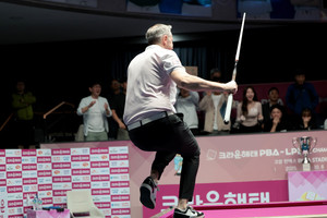 (고양=국제뉴스) 이정주 기자 = ‘벨기에의 성실한 거인’ 에디 레펀스(56·SK렌터카)가 3년 10개월의 긴 기다림 끝에 PBA 개인 투어 정상에 우뚝 섰다. 당구대 위로 펄쩍