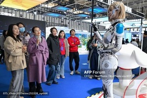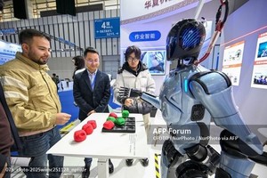 (중국=국제뉴스) 이소영 기자 = 중국 장쑤성 난징 국제 엑스포 센터에서 28일(현지시간) 열린 2025 세계 지능형 제조 컨퍼런스의 로봇 전시장이 관람객들로 붐볐다.이 행사는 첨