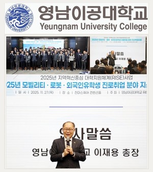 (대구=국제뉴스) 백운용 기자 = 이재용 영남이공대학교 총장은 "지역 산업의 지속 가능한 성장과 청년 일자리 창출을 위해서는 대학과 산업체, 지자체가 하나의 목표 아래 유기적으로