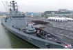 김정은 북한 국무위원장이 무장장비전시회 참관 일정으로 5000t급 신형 구축함 '최현호'를