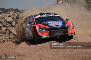(사우디아라비아=국제뉴스) 김준서 기자 = 벨기에의 티에리 누빌과 마르테인 위다게가 현대 i20 N 랠리1을 타고 사우디아라비아 제다에서 열린 2025 FIA 월드 랠리 챔피언십