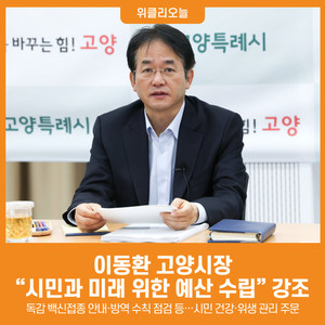 [경기 위클리오늘=박종국 기자] 이동환 고양특례시장은 19일 고양시청 백석별관에서 간부회의를 개최해 2026년 본예산 편성안을 보고받고 시민과 미래를 위한 예산 편성을 당부했다.먼