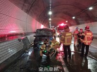 19일 오후 2시께 진안군 부귀면 익산-장수 고속도로 하행선 곰티터널 내 도로를 주행하던 승용차에 불이 나 차량 1대가 소실됐다. 당시 귀소 중이던 무주안성구급대가 화재를 발견하고