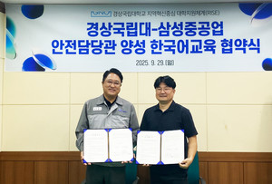 (진주=국제뉴스) 구정욱 기자 = 경상국립대 RISE사업단 산학친화프로그램과 삼성중공업은 지난 29일 가좌캠퍼스 언어교육실 국제교육부처장실에서 외국인 근로자의 안전한 근로환경 조성