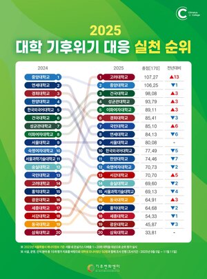 [투데이에너지 김병민 기자] (재)기후변화센터(이사장 최재철)는 4일, 서울시 온실가스 다배출 상위 20개 대학을 대상으로 실시한 ‘2025 대학 기후위기 대응 실천 평가’ 결과를