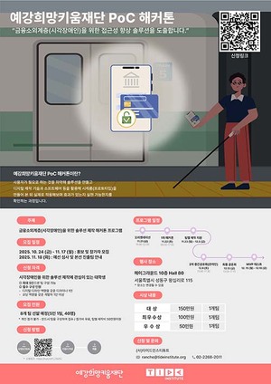 예강희망키움재단은 24일부터 ‘예강희망키움재단 PoC 해커톤’ 참가자 모집을 시작한다고 밝혔다. 이번 해커톤은 타이드인스티튜트와 협력해 진행되며, 금융소외계층 시각장애인의 정보 접