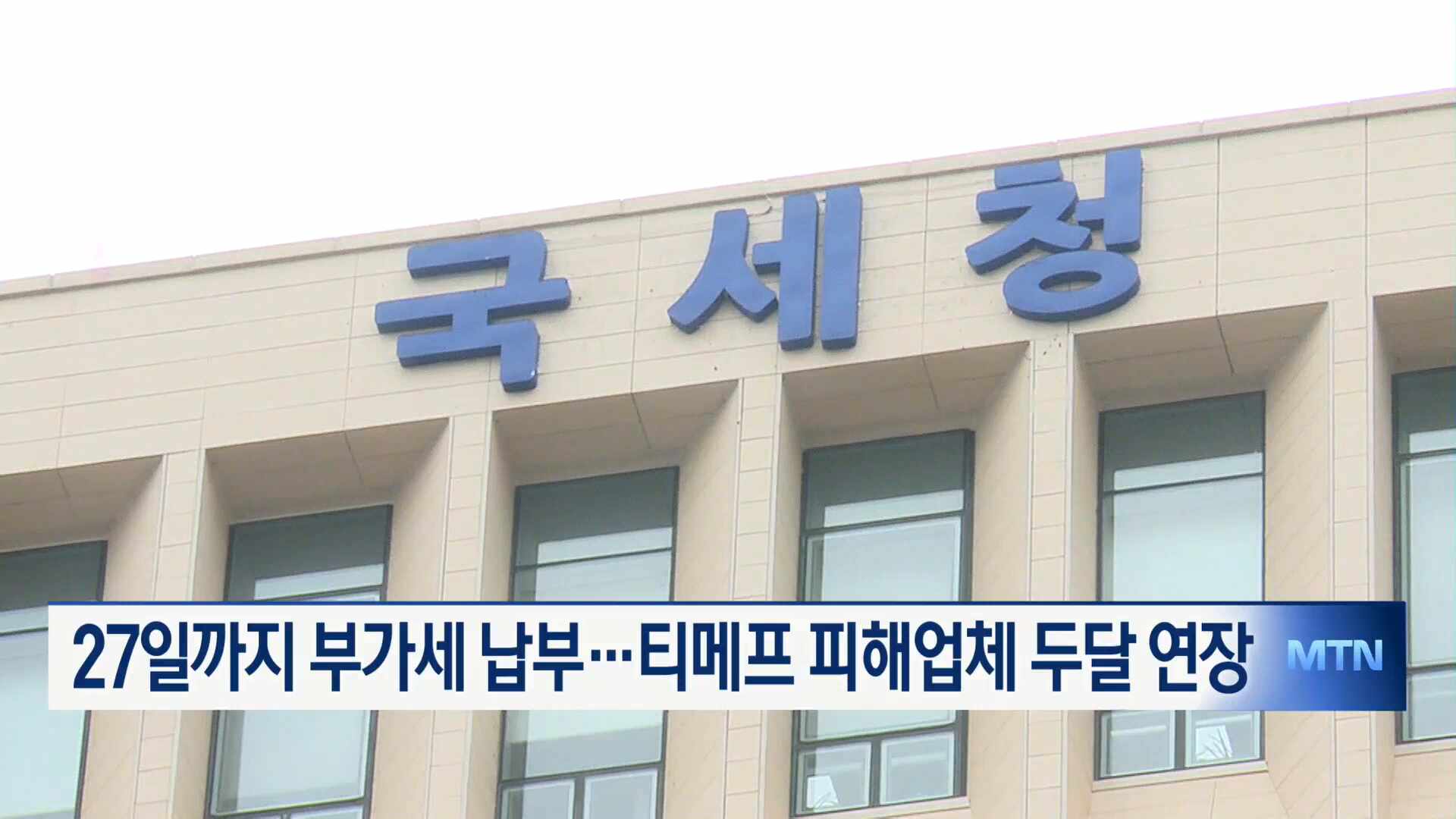 국세청이 어려움을 겪는 수출기업과 티몬·위메프 미정산 피해 사업사에 대해 부가가치세 납부기한을 두 달 연장합니다.국세청은 오는 27일까지 법인사업자 61만9000명에 대해 7월부터