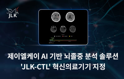 의료 인공지능(AI) 전문기업 제이엘케이가 자사의 AI 기반 뇌졸중 분석 솔루션 'JLK-CTL'이 혁신의료기기 통합심사를 통과했다고 28일 밝혔다. 이번 승인으로 제이엘케이는 비